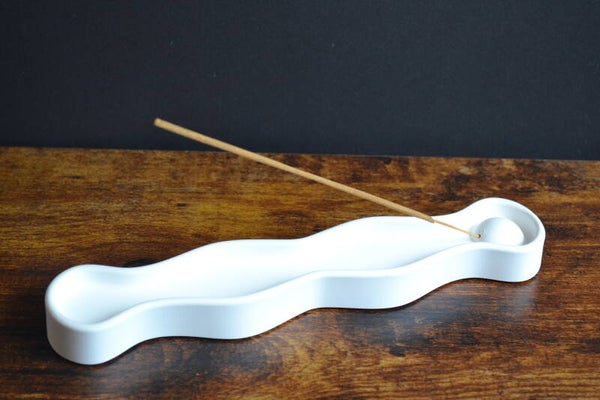 Wunderschöner Räucherstäbchenhalter in Wellenoptik. Das Verbrennen von Räucherstäbchen dient als sinnliche Möglichkeit, den Raum zu heiligen und Verhaltensweisen mit Achtsamkeit und Bewusstsein darzubringen.