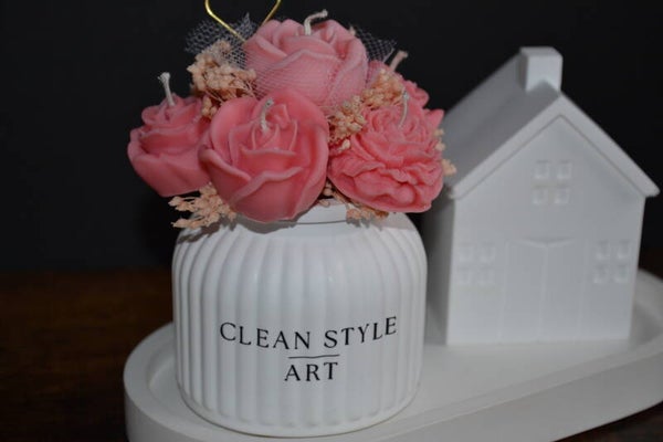Material: Bio Sojawachs, Gießkeramik, Trockenblumen (Lagerus und/oder Schleierkraut) natur oder eingefärbt