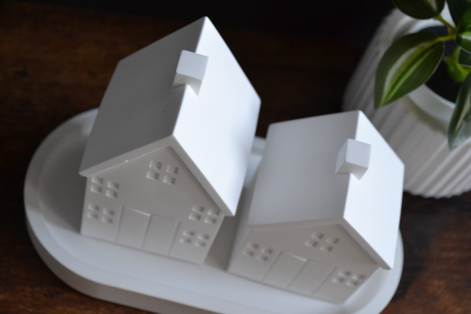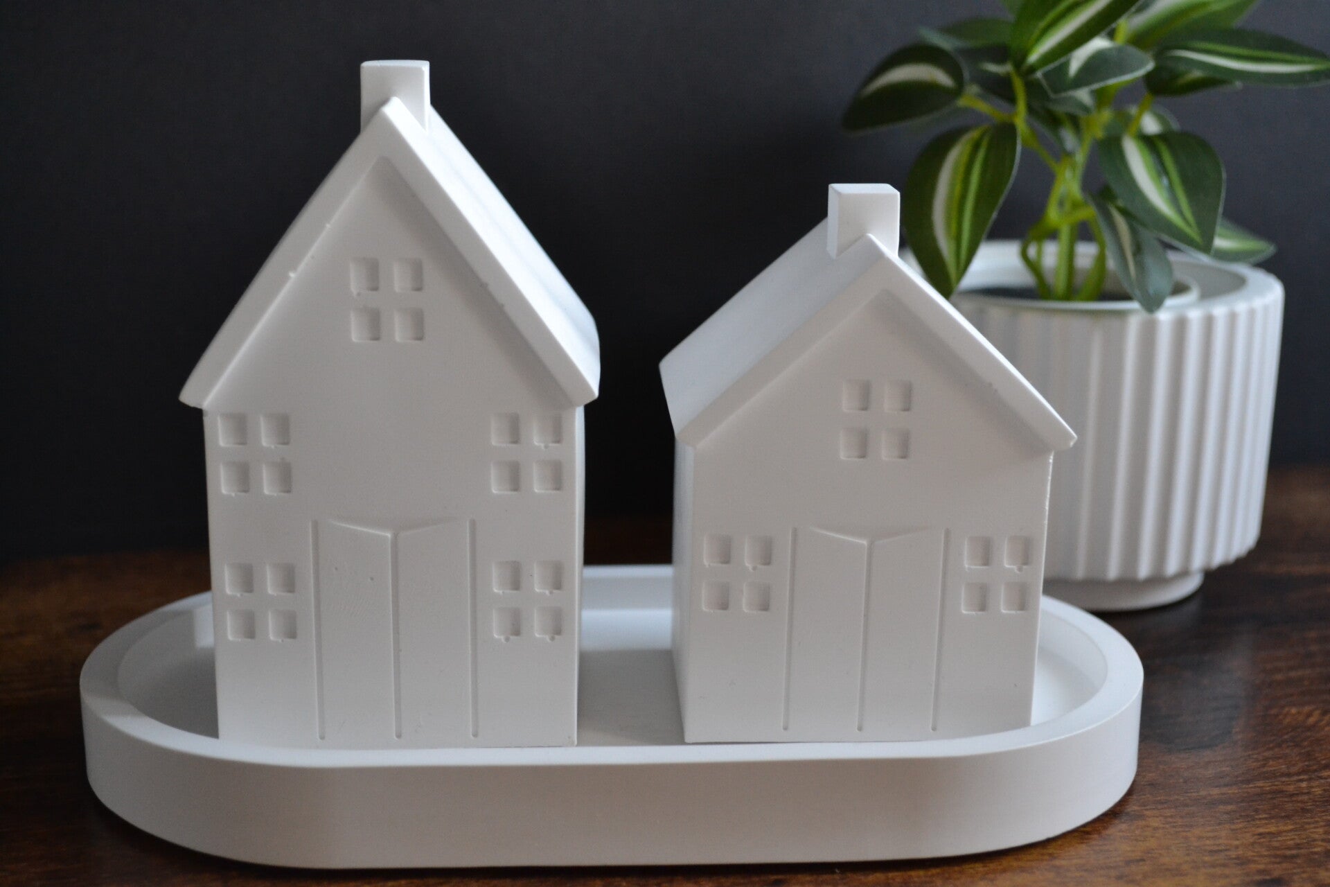 Maße Haus links: Länge 4,5cm, Breite 5,5cm, Höhe 8cm, 290g
