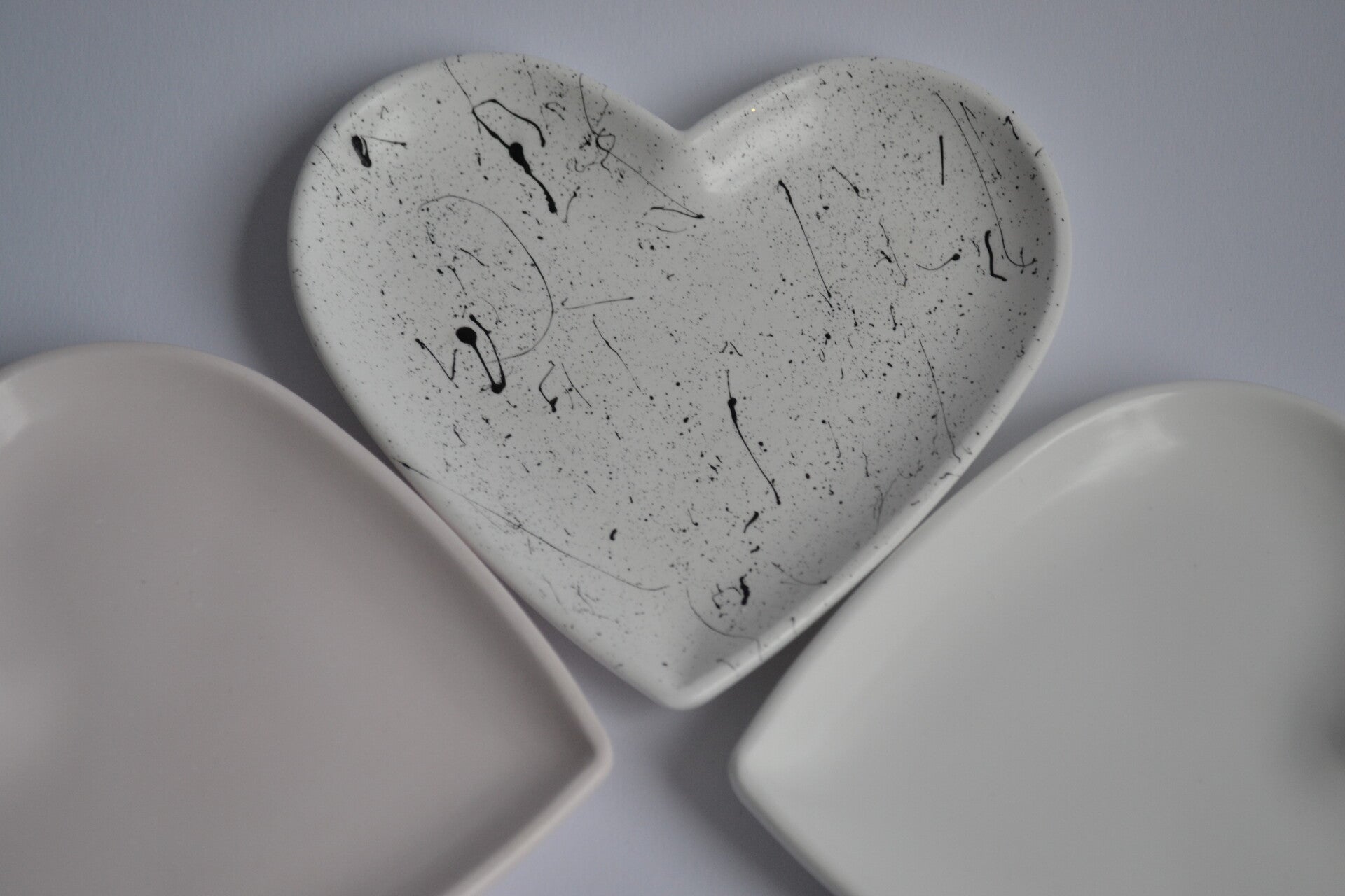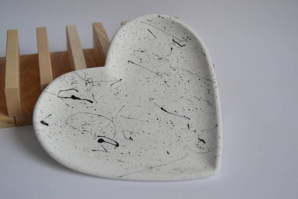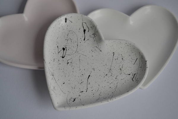Die Schmuckschale MODERN LOVE aus Gießkeramik wird in Handarbeit gefertigt und mit einem modernen Splatter Finish veredelt.